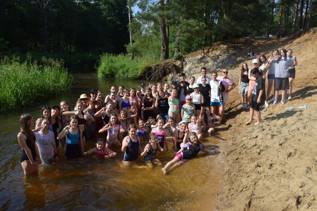 Urocza i spokojna rzeczka Lubiąża, daje nam wiele radości a „pierwszaki” mają gdzie przeżyć przyjęcie do naszej obozowej rodziny. Takie chwile w środku sosnowego lasu pozostaną długo w pamięci bo to taki leśny rarytas.